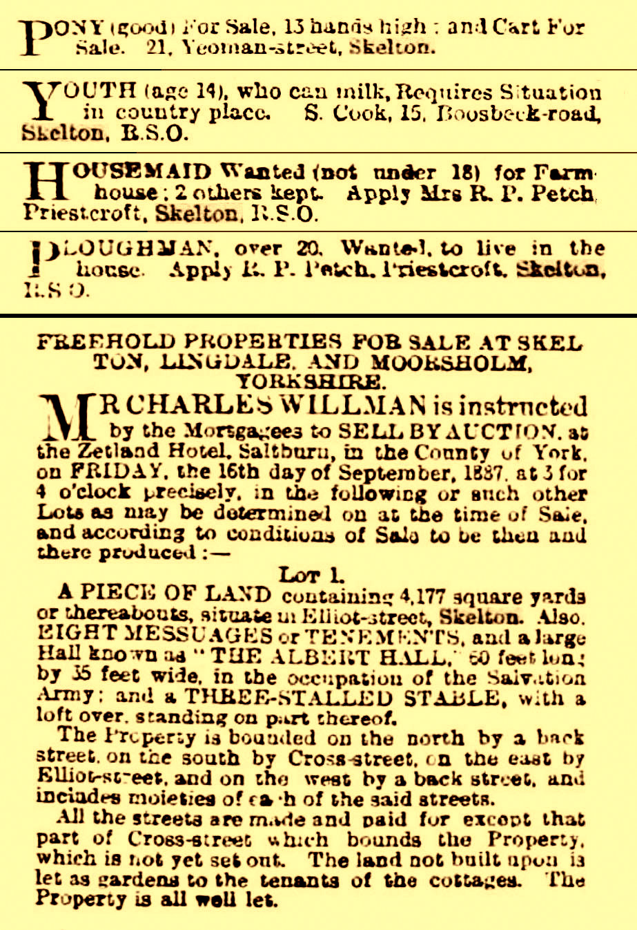 He had seen Mr Hamilton the Skelton Estate Agent and been treated with the greatest courtesy, but on visiting the Estate Office, Mr Tutin could not have treated him worse if he had been a vagrant.