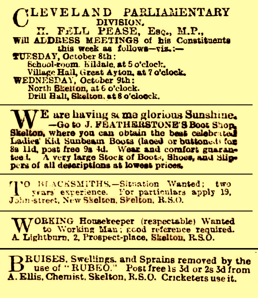John Bell, Ironmaster, of Rushpool Hall, Skelton died at the age of 68 in this year at his holiday home in Mustapha Rais, Algiers.