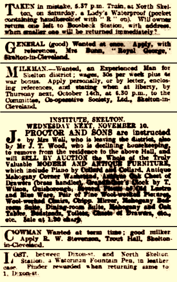 Mr W Jackson, the assistant overseer for Skelton asked for a War bonus, owing to the increased cost of living and the loss that he had sustained through the last Registration Act.