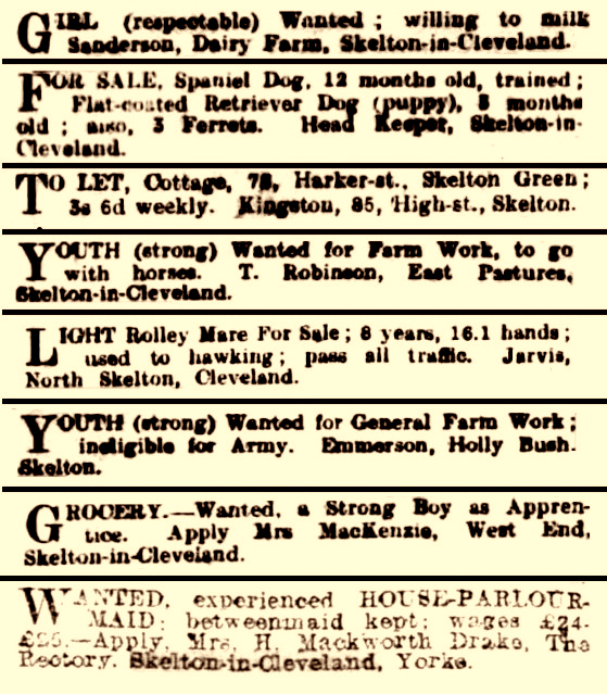 2 North Skelton tradesmen, who had battled in the past, were summoned at Guisborough for Sunday trading and were fined 5 shillings.