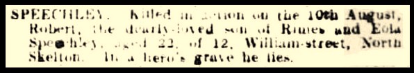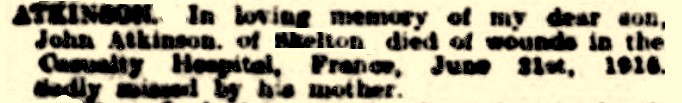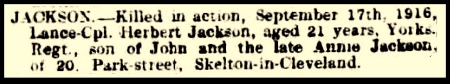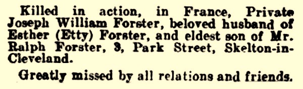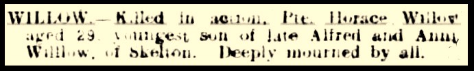He was aged 21 and a native of Westerdale and spent his early days at Wood End Farm. At the time of joining the Army he was employed by Mr W R Young, a Skelton butcher.