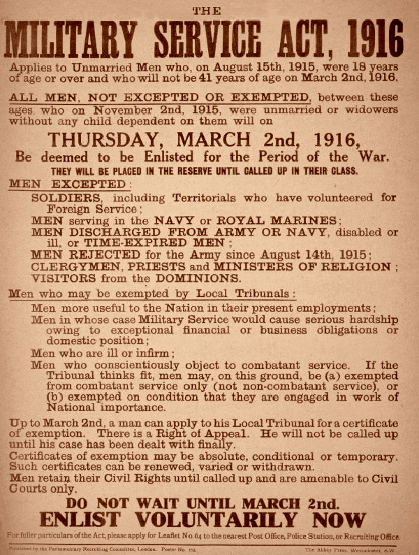 was considered, as of the 2nd March 1916, to have enlisted for general service with the Colours or in the Reserve.