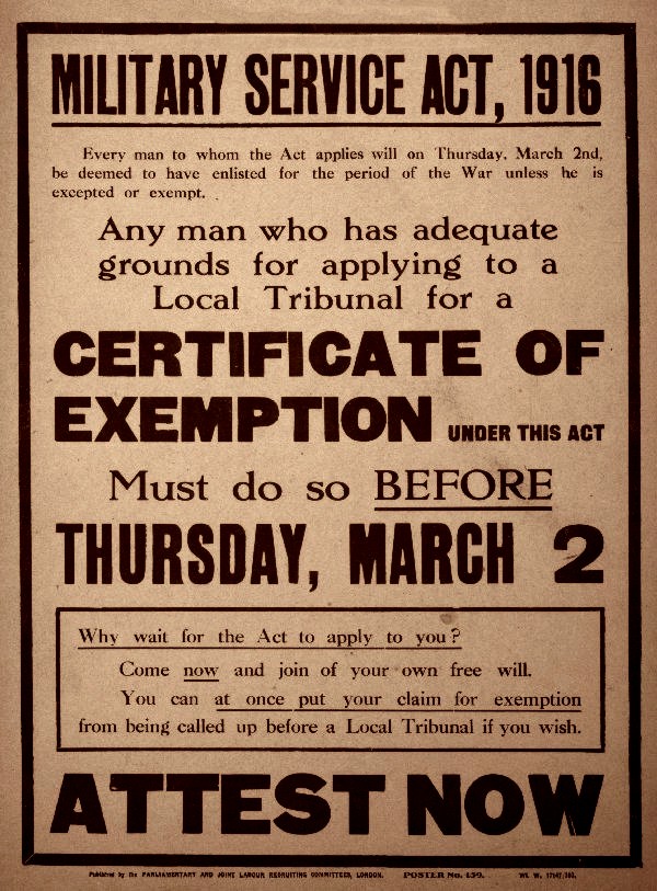 Those who were eligible for service could appeal to their Local Tribunal on the grounds that they were -
