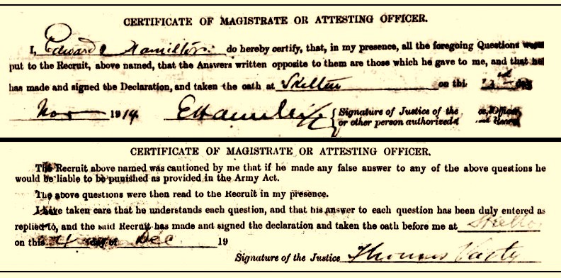 He was enlisted in the Yorkshire Regiment and then transferred to the 1/4th Battalion of the York and Lancaster Regiment.