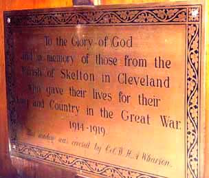 Plaque in Skelton All Saints Church, High Street listing the war dead.