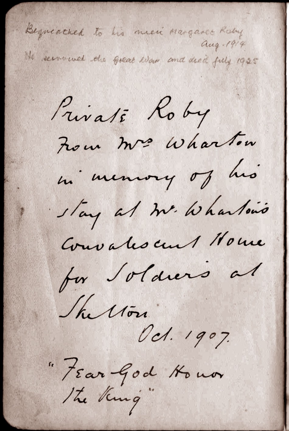 How Pte Roby came by his injuries to be in convalescence in 1907 is unknown. The Boer War ended in 1902 and thereafter the regular