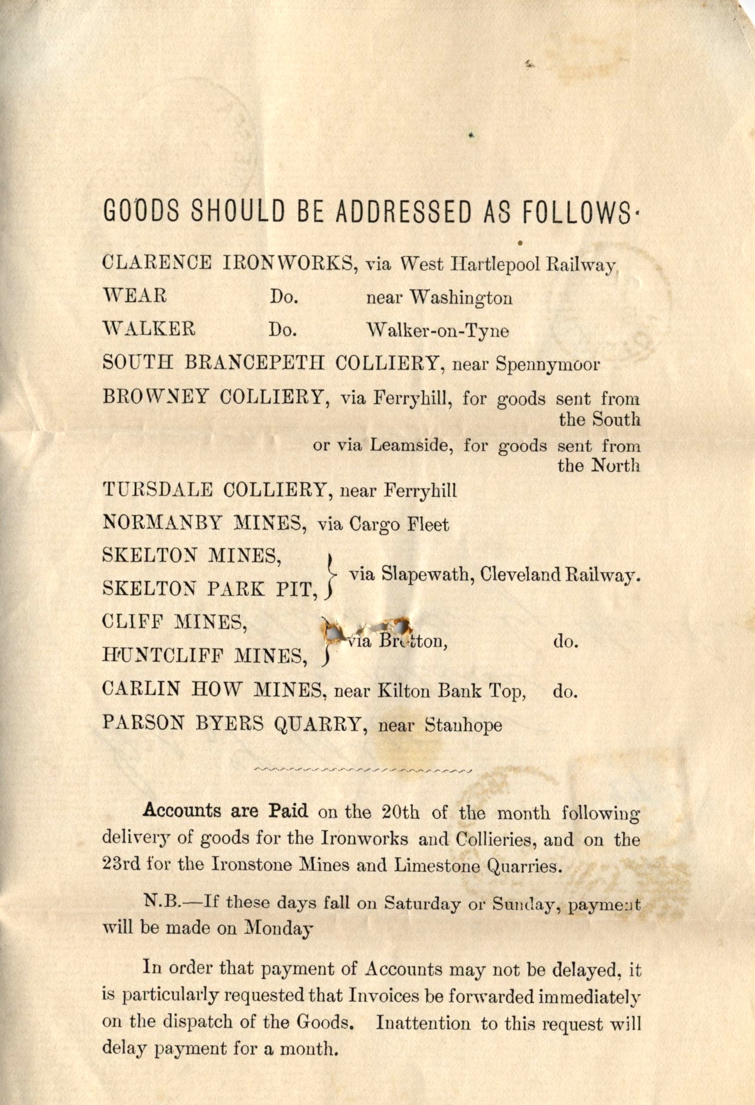 a monopoly of vertical integration with the Iron and Steel Works at Port Clarence supplied by their own Coal mines in Durham and