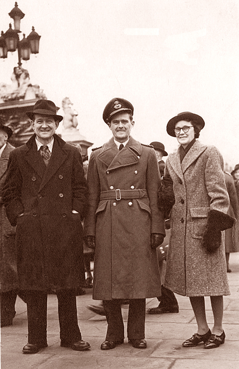 Squadron Leader Joe Reed, with his parents, at Buckingham Palace for the investiture by King George VI of the Distinguished