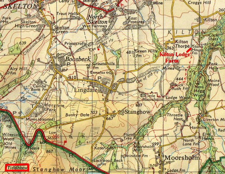 Kilton Lodge Farm is close to the ruins of Kilton Castle and is shown on present day maps as Stank House Farm.