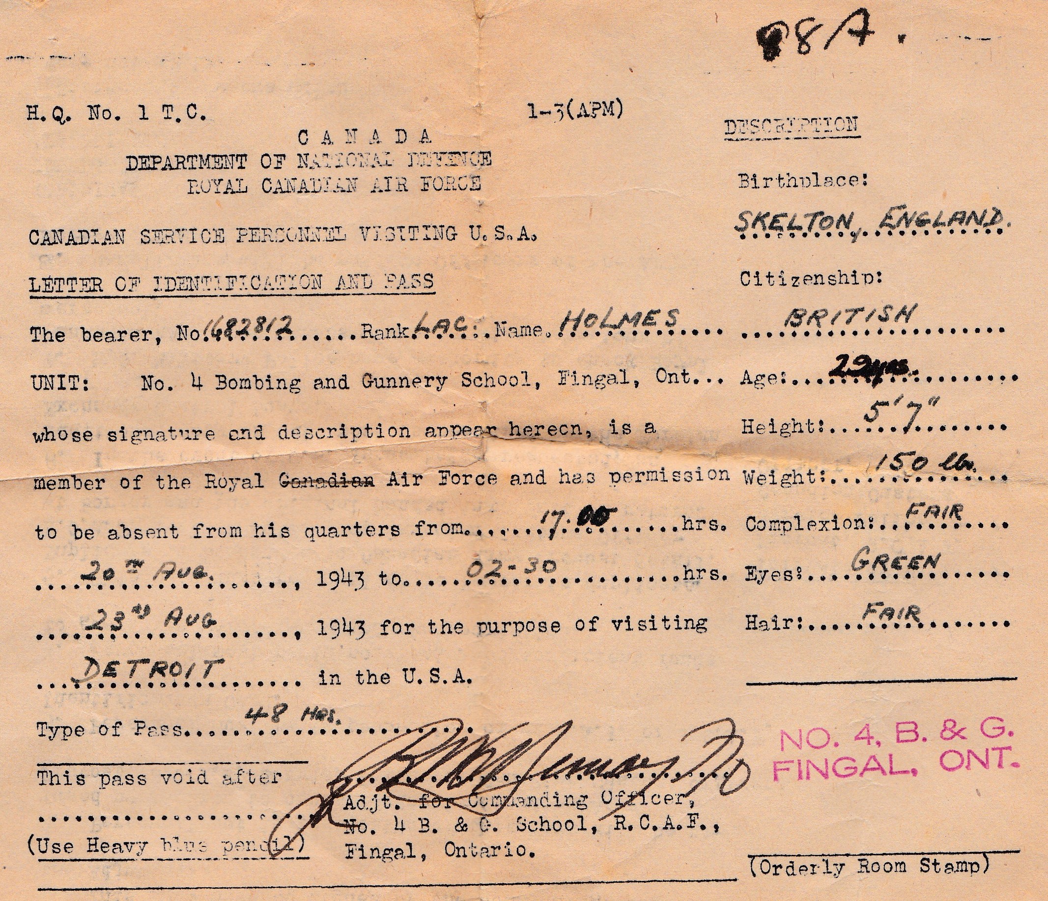 Another feature was his good fortune, if one can possibly describe it as such, of being based in England and of being able to travel home on leave on several occasions