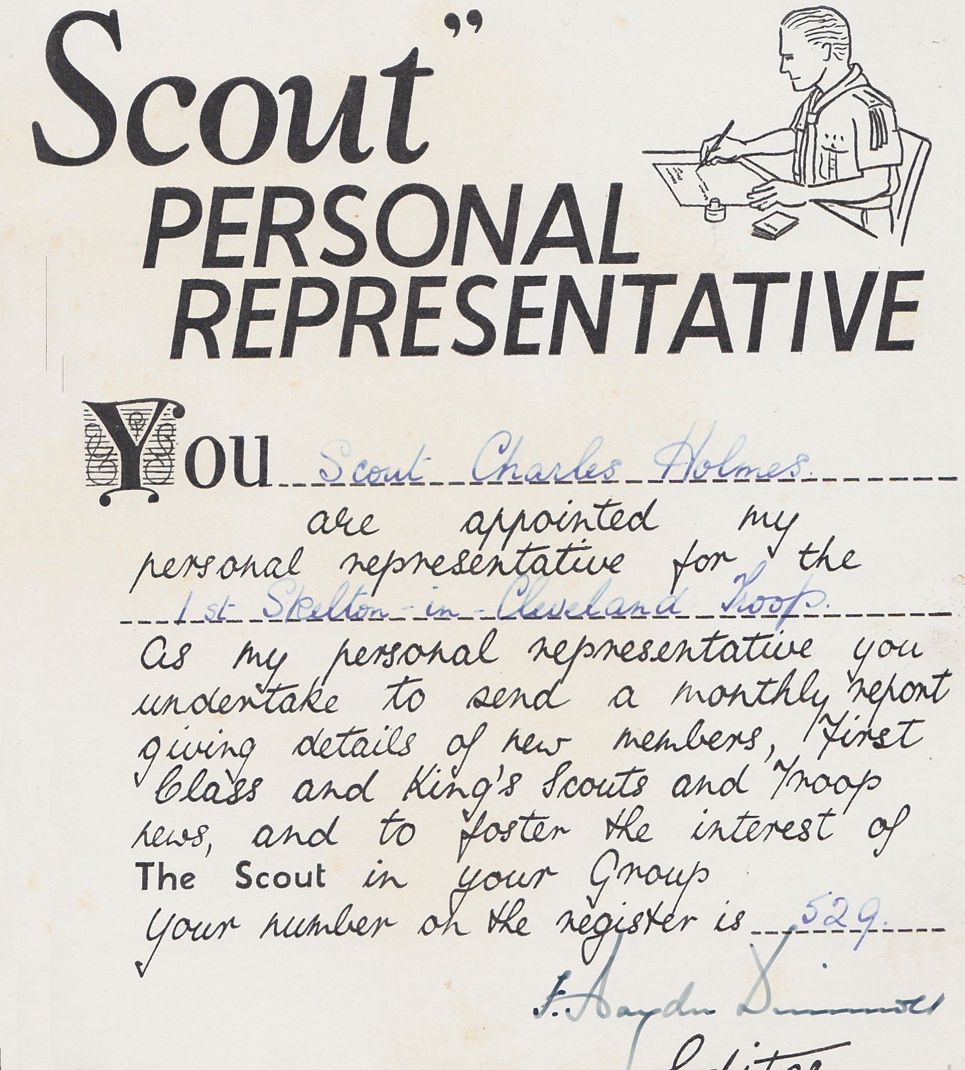 Charles Holmes as a Skelton Scout.