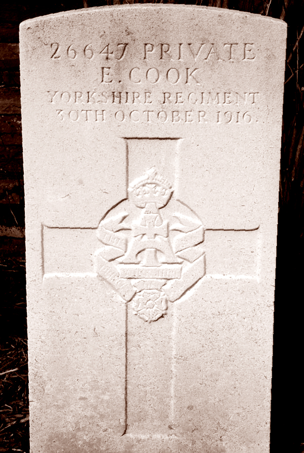 The 10th Yorks Battalion were defending trenches that had been captured near Gordon Alley, NE of Martinpuich, when Edward was killed on 29th October 1916.