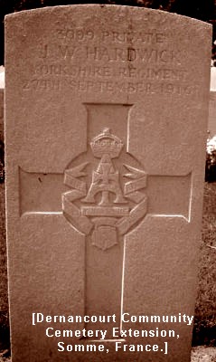John died of wounds and must have been taken back to a Casualty Station near Dernancourt, close to Albert, where he is buried.